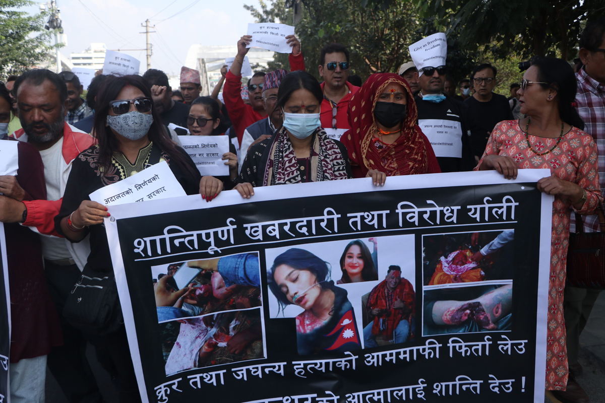 सोमबार काठमाडौँको माइतीघरमा एमनेस्टी इन्टरनेसनलको आयोजनामा भ्रष्टचारविरुद्ध प्रदर्शन भएको हाे।