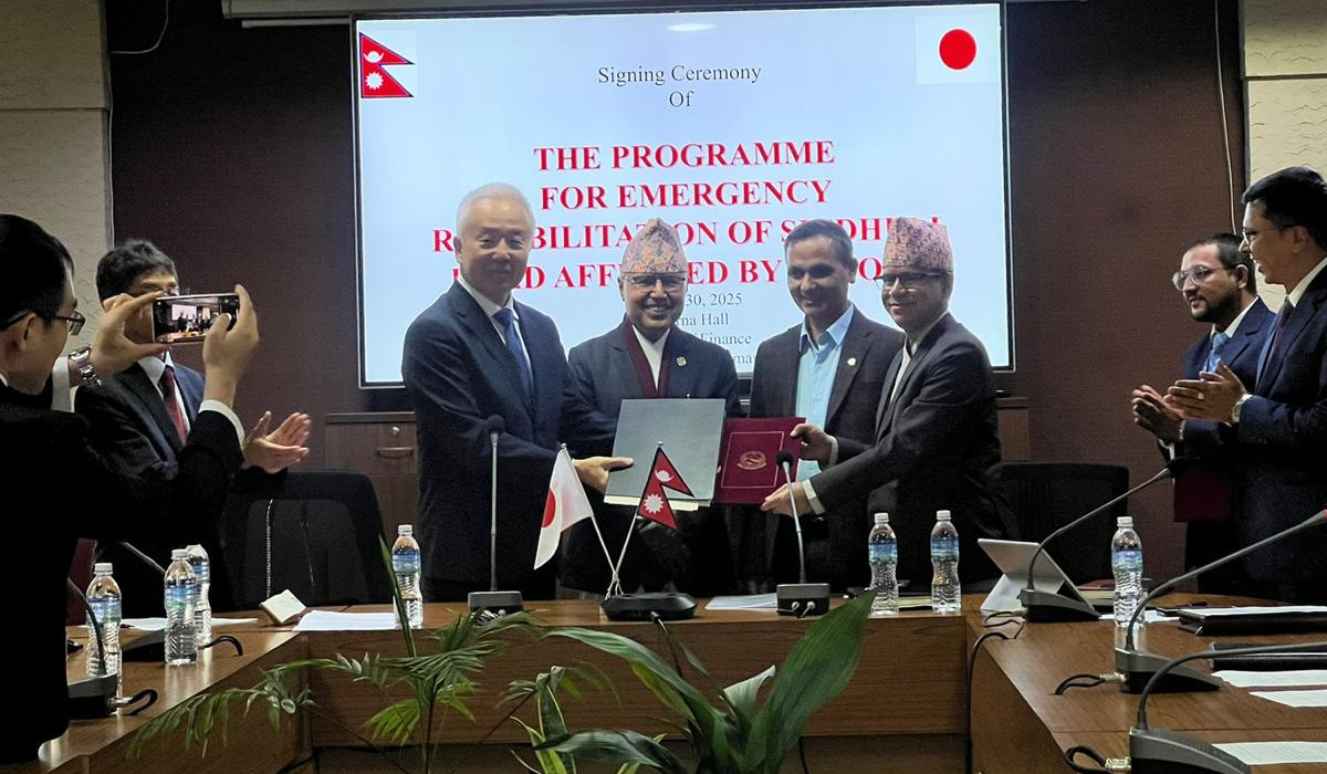 अनुदानसम्बन्धी एक्स्चेन्ज अफ नोट्समा नेपाल सरकारका तर्फबाट अर्थ सचिव घनश्याम उपाध्याय र जापानका तर्फबाट नेपालका लागि राजदूत महामहिम तोरु माएदाले हस्ताक्षर गरे ।