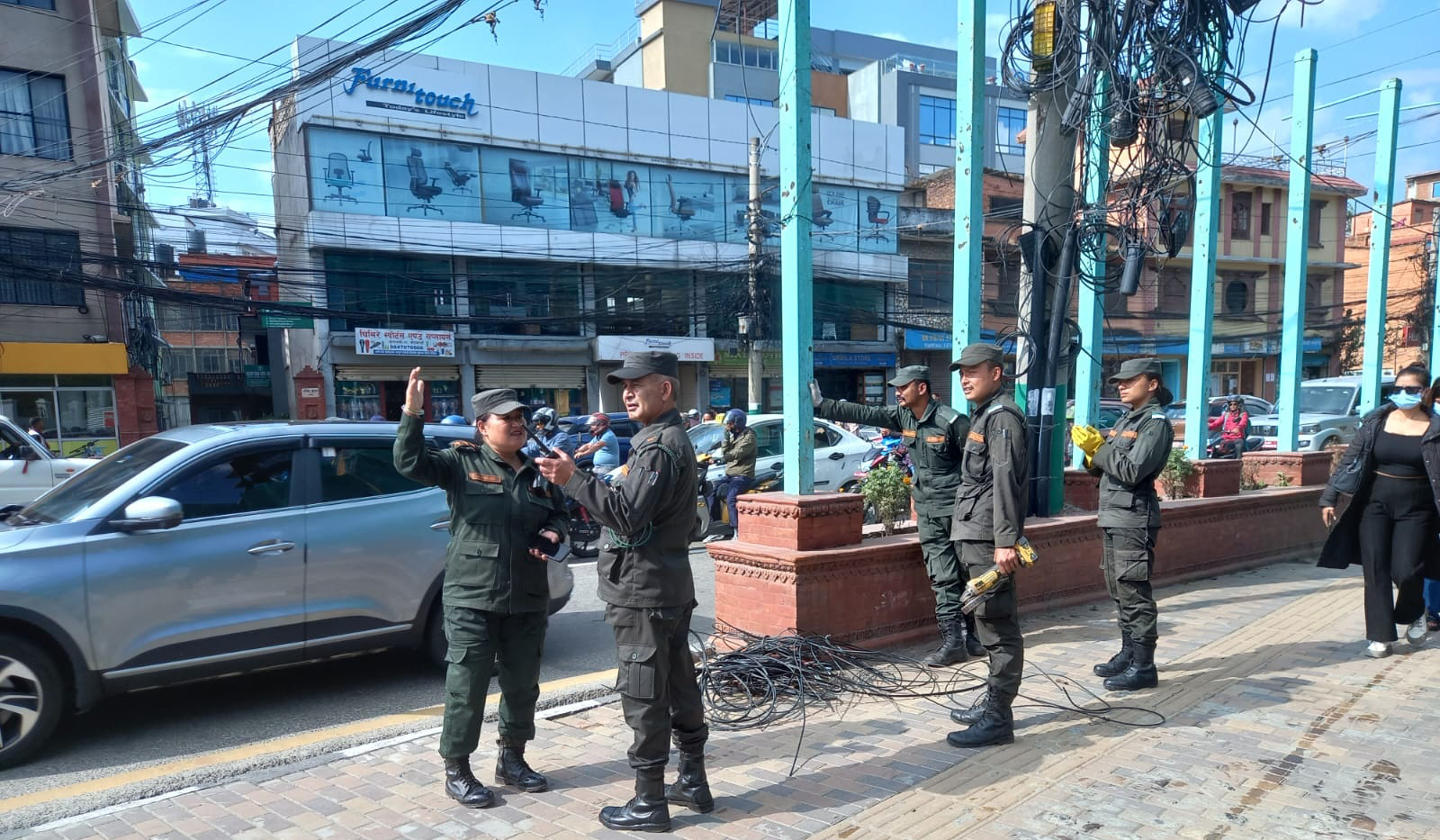 महानगरका विभिन्न सडकमा तार लत्रिँदा पैदलयात्री अल्झिने र सडकसम्म झुन्डिँदा सवारी दुर्घटनाको जोखिम बढेकाले व्यवस्थापन सुरु गरिएको महानगर प्रहरी बलका प्रहरी निरीक्षक रामेश्वर पौडेलले जानकारी दिनुभयो ।
